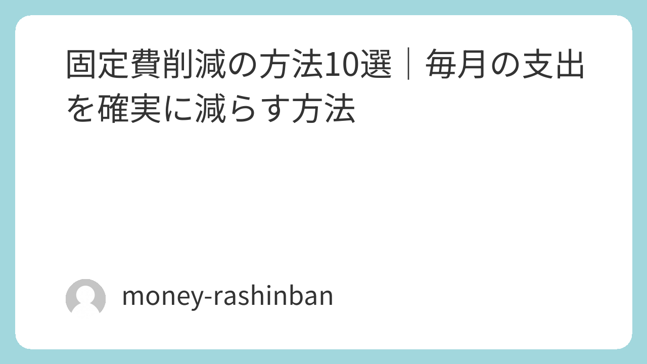 - 固定費の見直しは一度やれば継続的に節約効果が続く最強の節約法