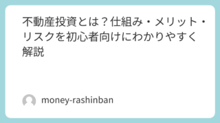 不動産投資 不動産投資とは?仕組み・メリット・リスクを初心者向けにわかりやすく解説 不動産投資の仕組み・メリット・リスクを初心者向けに解説。利回りの計算方法・物件の種類・失敗しないための注意点まで最新情報でお届けします。 2026.04.22 不動産投資